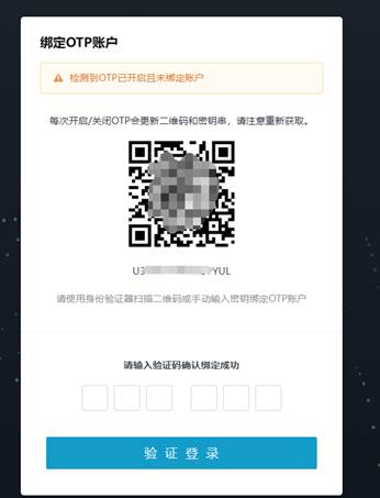 此后登录用户使用用户名+密码+OTP验证码方式登录,OTP验证码一分钟更新一次。