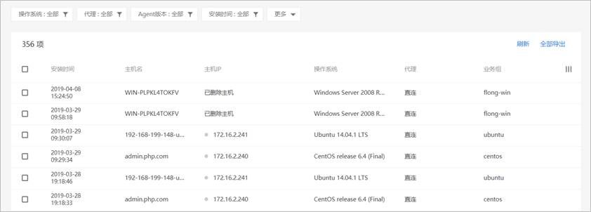 安装成功,可在Agent安装界面的安装记录中查到相应主机。