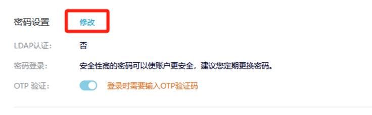 修改登录密码需登录后,点击右上角头像后选择账号资料,点击修改密码进行密码修改(首次登录后需立即更改),如下图所示。